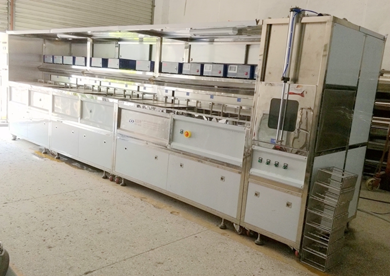 威固特VGT-1403FH微棱鏡超聲波清洗機VGT-1403FH為威固特光學超聲波清洗機,設備共有14個功能槽,配置有循環過濾系統、有機溶劑蒸餾回收系統、自動恒溫系統、拋動系統、超聲波清洗系統、抽風裝置、環保液前處理系統、慢拉脫水、熱風烘干等。