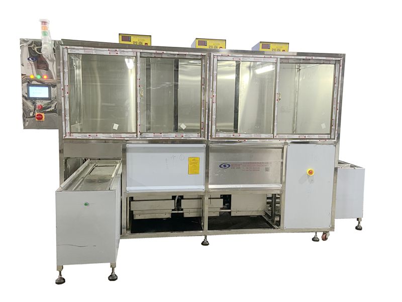 冷/熱反射鏡超聲波清洗機冷/熱反射鏡超聲波清洗機是一套光學玻璃洗凈超聲波裝置,使用者將裝好工件的工裝治具置入提籃后,手提置入槽進行超聲波洗凈,當預置的洗凈時間到達后依次送往后續(xù)各個洗凈工藝槽