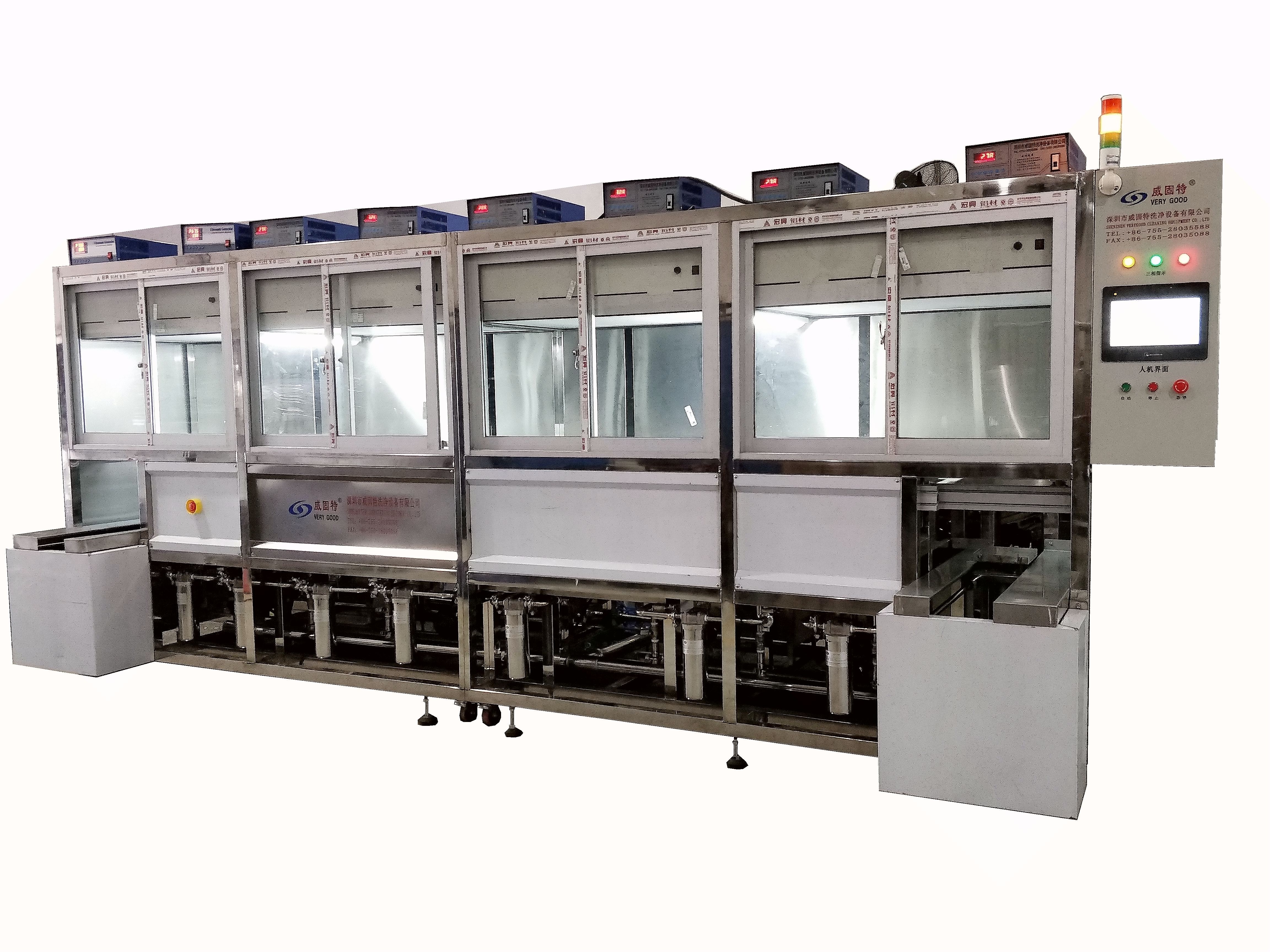 威固特全自動(dòng)石英晶振監(jiān)控片深圳超聲波清洗機(jī)設(shè)備共有8個(gè)功能槽,配置有循環(huán)過濾系統(tǒng)、自動(dòng)恒溫系統(tǒng)、觸摸屏系統(tǒng)、拋動(dòng)系統(tǒng)、超聲波清洗系統(tǒng)、預(yù)熱箱系統(tǒng)、溢流系統(tǒng)、噴淋系統(tǒng)等。